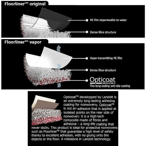 The Floorliner™ Original is designed to keep your construction site safe and clean. It consists of a high-strength, soft-touch fleece, equipped with an anti-slip coating (Opticoat™) on the back and an impermeable anti-slip film on the top, designed to protect all types of floors and surfaces.