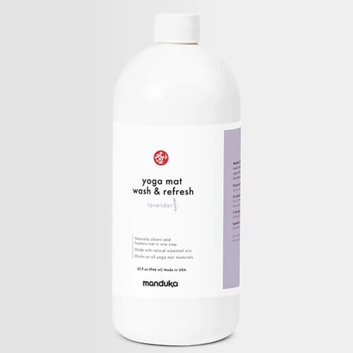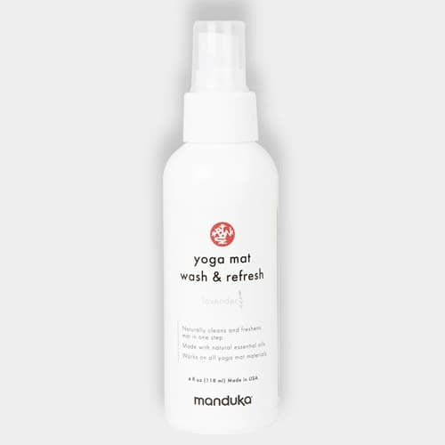 Manduka's Yoga Mat Wash & Refresh uses 100% naturally derived ingredients, formulated to keep your yoga mat smelling fresh and free from surface dirt and stains. Use it after every class to keep your mat clean and odor-free.