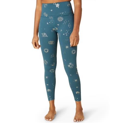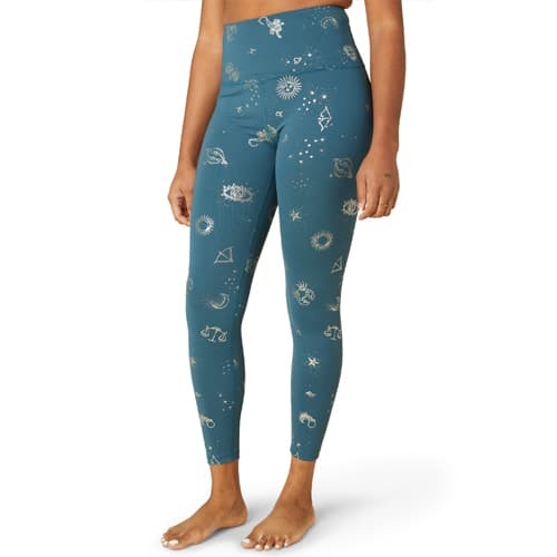 Ultra soft comfort with an astral state of mind. Beyond Yoga's best-selling high waist midi legging now with a shiny champagne shade zodiac foil print to take this look to new dimensions. Pair with neutrals or any nature-inspired colors.