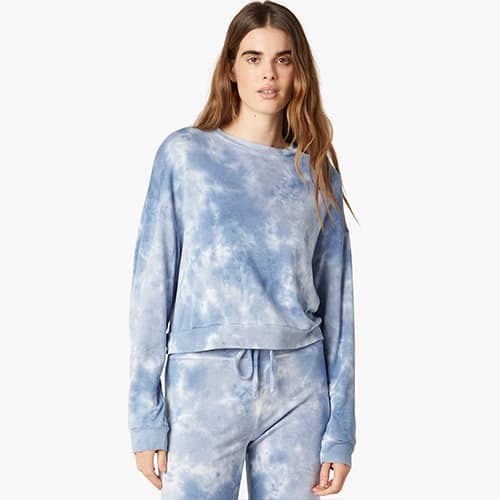 A soft and easy pullover made with a unique garment dye technique that gives it a faded, vintage look. Complete with a boxy silhouette and dropped long sleeves.