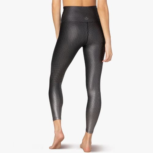Spot on Sportflex: Beyond Yoga gave this exceptional performance fabric a modern update with a subtle dotted motif made from a metallic foil print. The fabric adopts a luxe element with the futuristic shine making these dots spot on.