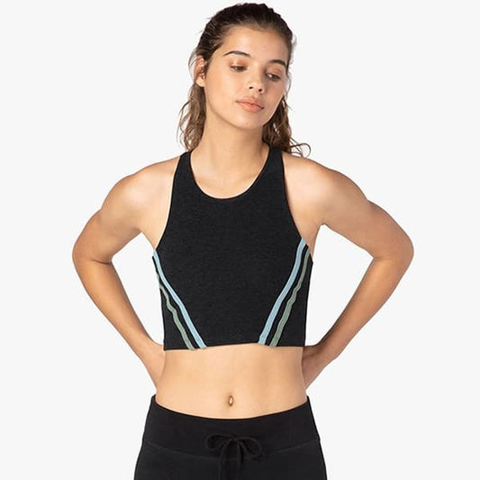 Show your stripes in tank made from our ultra soft Spacedye fabric. Featuring a built-in bra, racerback design and contrasting stripe detail. Pair it with the coordinating legging for a look that falls in line.