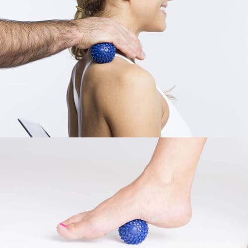 It is particularly effective in the feet for relieving painful conditions like plantar fascitis and rotator cuff issues.  Athletes (golfers, runners, tennis players) use the Acuball-mini before their activity to loosen problem areas in their feet, shoulders or arms to enhance muscle performance and reduce risk of injury. It’s also an excellent massage tool – try massaging your friend’s shoulders and neck with it!
