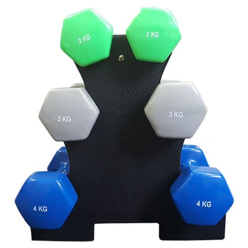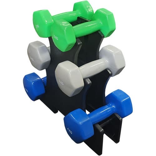 - Stores 3 pairs of dumbells (6 dumbbells)