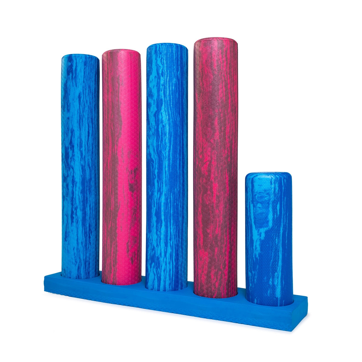 Great for Pilates Studios and retail display, the foam roller stand suits all EMP foam rollers. Made from foam. Holds up to 5 rollers, and comes in blue as above.