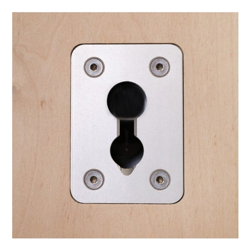 The wall plate is the foundation of the yoga wall system. It is a spring loaded socket that receives the ball of the other components. The plates are superbly crafted to mount flush into a 3/4" (2cm) sheet of veneer plywood. The more plates you put into your wall, the more places you have to put wall belts or wall bar the greater variety of yoga postures you can do.