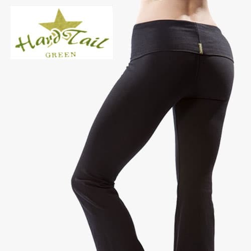 These Hard Tail Roll Down Bootleg Flare Pants are just the thing for a yoga workout and wearing after as well. With the fold over waist, it has a snug fit and fitted through the thigh with a bootcut at the leg bottoms.