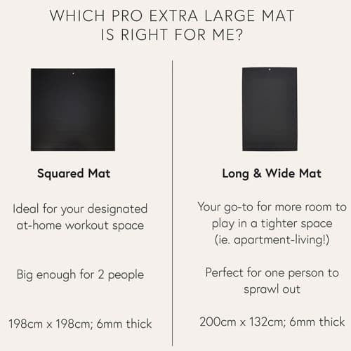 The PRO Squared is a generously-sized mat, big enough to share, and features the innovation and performance of the legendary Black Mat PRO, including the luxurious denseness for unparalleled comfort and cushion and a superior non-slip fabric finish. And this best of all, there's plenty of "room to roam" or to practice with a partner. There's no place like hOMe - share the mat you love with someone you love, in the comfort of your home.