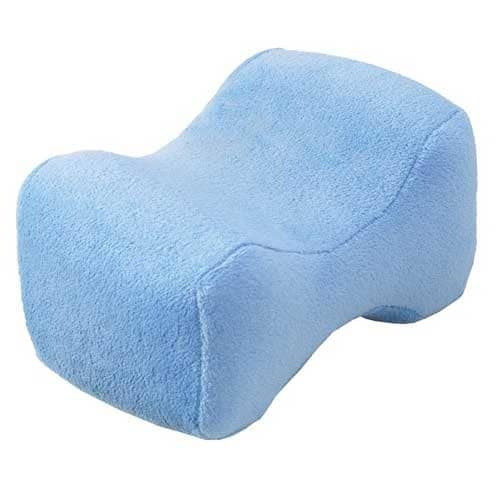 Specially designed leg pillow fits between the knees while sleeping to relieve strain and pressure on the lower back, knees and ankles.