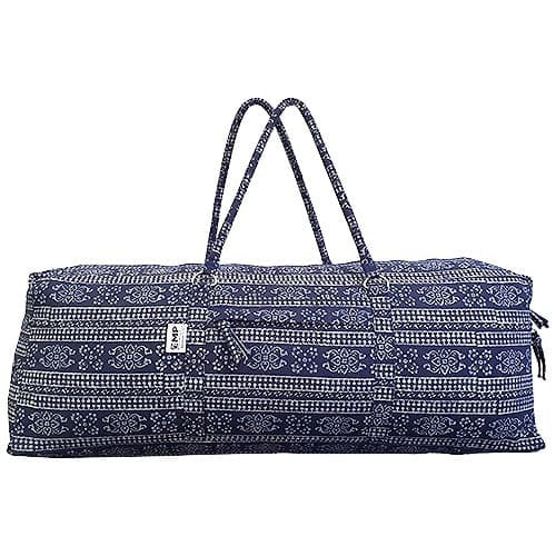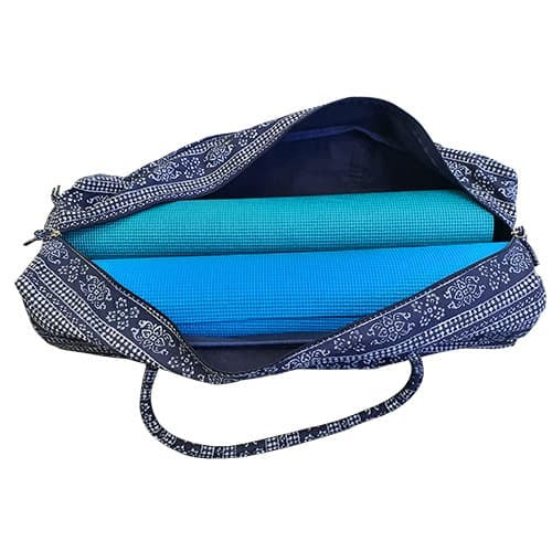 Keep everything safe and keep everything together with our beautiful new Navy Print Kit Bags. Featuring a large spacious body with side pockets on both ends and one side pocket in the middle, there is plenty of room for mats, towels, blocks, props, clothing etc.