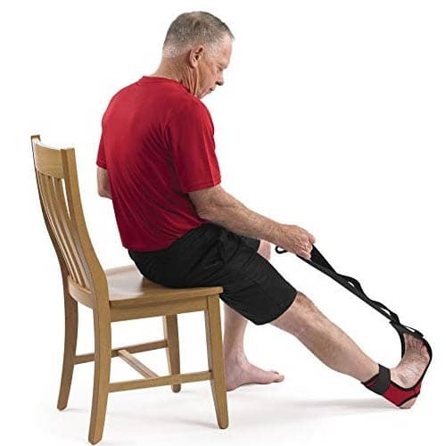 A unique stretching aide that assists in the treatment of plantar fascitis, heel spurs, calf, thigh, hip and low back strains and injuries, even for users with limited range of motion.